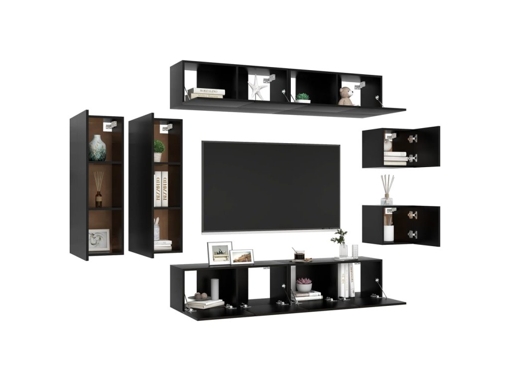 Táto sada závesných TV skriniek je vybavená veľkým úložným priestorom na uloženie rôznych predmetov a vo vašej domácnosti vytvorí praktický a pútavý doplnok.