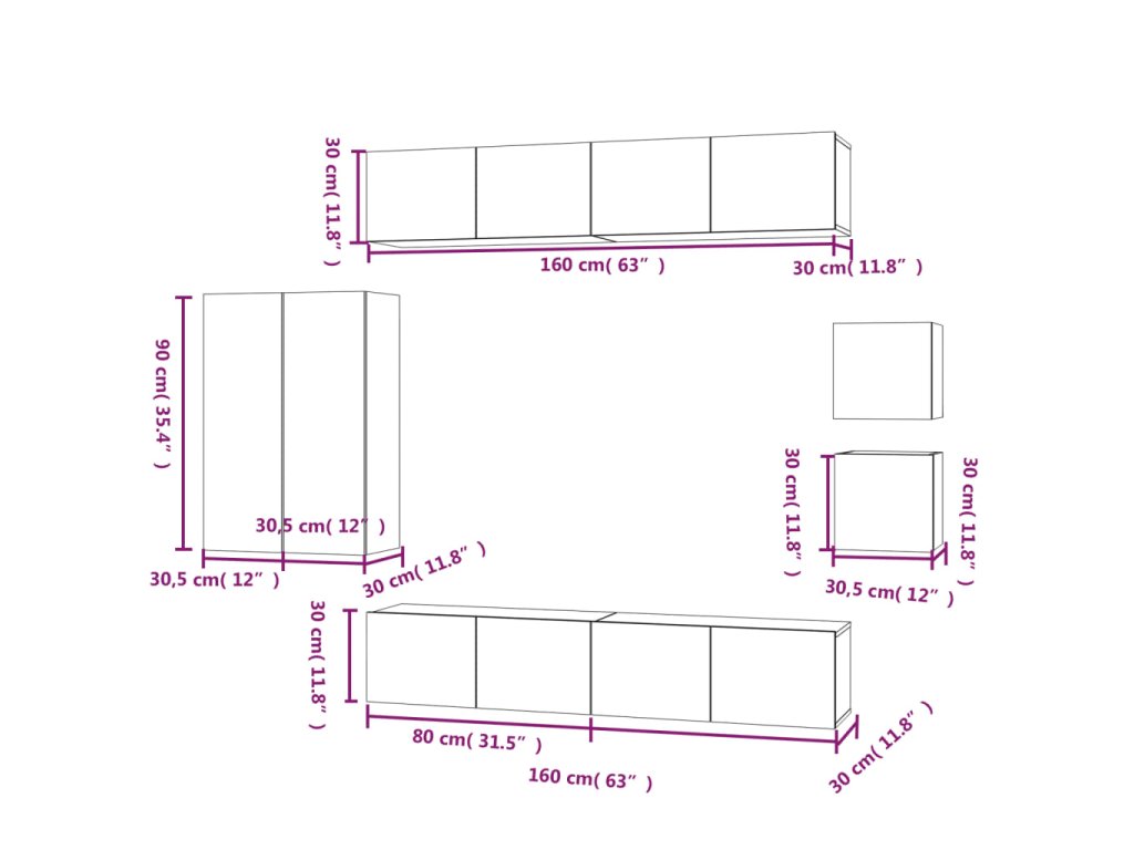 - 4 x TV skrinka: 80 x 30 x 30 cm (Š x H x V)