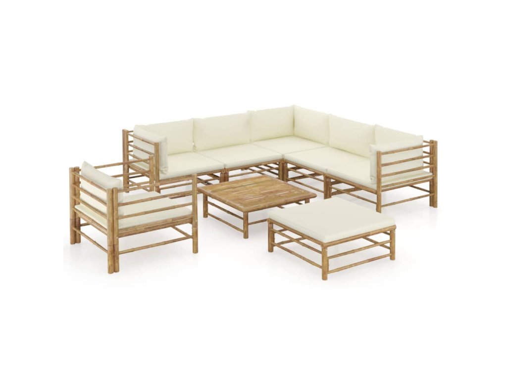 Vytvorte si oddychové miesto na príjemné posedenia s touto bambusovou záhradnou sedacou súpravou.