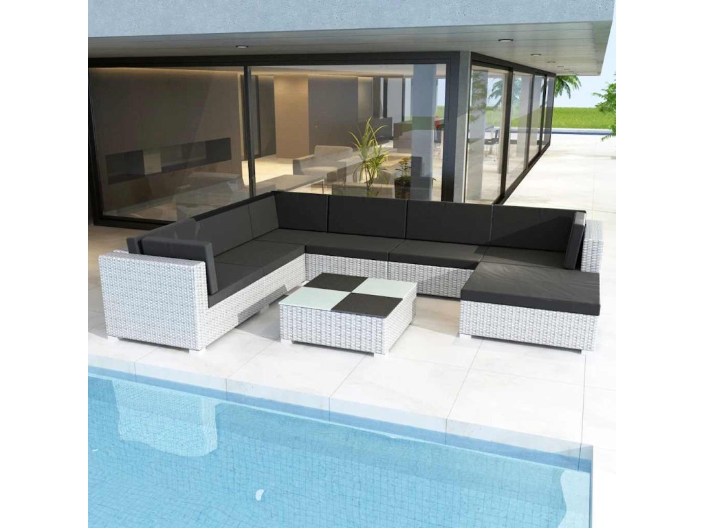 Rám nábytku je vyrobený z pevnej ocele s práškovou povrchovou úpravou, ktorá mu dodáva odolnosť, stabilitu a trvácnosť. Odnímateľné čalúnené podložky na sedadlá a operadlá s hrúbkou 6 cm poskytujú dokonalé pohodlie. Ratanová súprava je vyrobená z PE ratanu, ktorý je stopercentne odolný voči vode a poveternostným vplyvom, a preto sa môže používať v exteriéri počas celého roka.