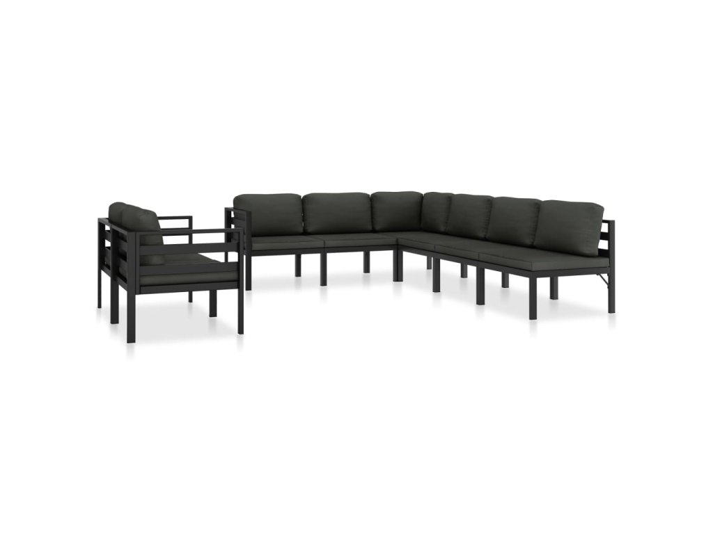 Vonkajšia sedacia súprava má modulárny dizajn. To vám umožní kombinovať jeho modulárne prvky do rôznych konfigurácií podľa vášho výberu! Sedacia súprava vyrobená z hliníka je odolná voči poveternostným vplyvom, pevná, ale ľahká. Túto súpravu pohoviek môžete s ľahkosťou premiestňovať. Pribalená husto čalúnená podložka na sedadlo a operadlo vám prinášajú maximálne pohodlie pri sedení. Montáž záhradného nábytku je jednoduchá.