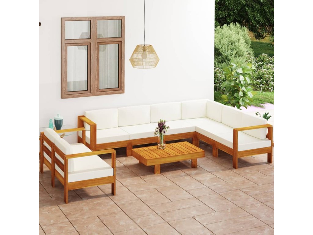vidaXL 8-dielna záhradná sedacia súprava s krémovobielymi podložkami akáciové drevo