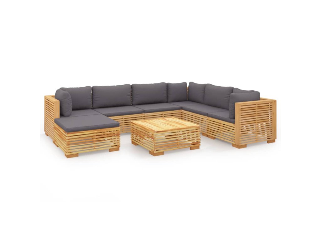 - Masívne teakové drevo: Masívne teakové drevo je krásny prírodný materiál. Bolo vyzreté, umelo vysušené a jemne obrúsené, čo mu dalo veľmi hladký vzhľad. Teakové drevo je známe svojou výnimočnou pevnosťou a odolnosťou voči poveternostným vplyvom.