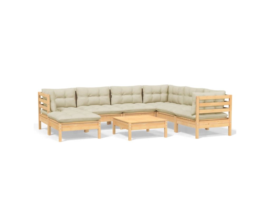 Terasová sedacia súprava je vyrobená z masívneho borovicového dreva, vďaka čomu je robustná a stabilná. Vankúše jej dodávajú dodatočné pohodlie. Môžete ju skombinovať s inými modulárnymi segmentmi a vytvoriť si tak svoje vlastné konfigurácie záhradného posedenia!