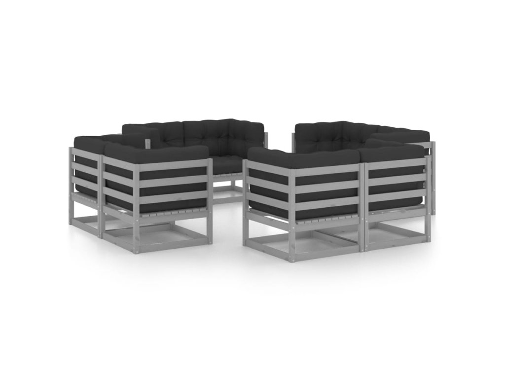 Záhradná sedacia súprava je vyrobená z masívneho borovicového dreva, vďaka čomu je robustná a stabilná. Vankúše jej dodávajú dodatočné pohodlie. Môžete ju skombinovať s inými modulárnymi segmentmi a vytvoriť si tak svoje vlastné konfigurácie záhradného posedenia!