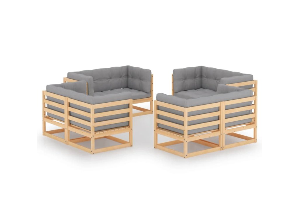 Záhradná sedacia súprava je vyrobená z masívneho borovicového dreva, vďaka čomu je robustná a stabilná. Vankúše jej dodávajú dodatočné pohodlie. Môžete ju skombinovať s inými modulárnymi segmentmi a vytvoriť si tak svoje vlastné konfigurácie záhradného posedenia!