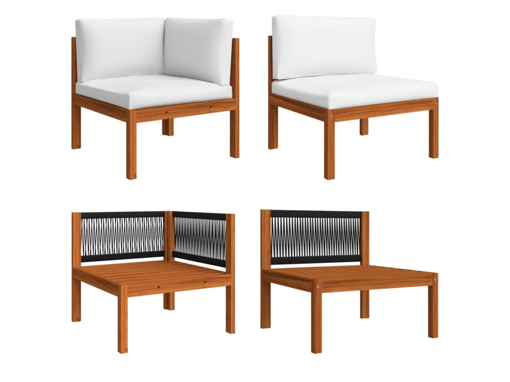 Záhradná pohovka sa vyznačuje prepracovanými lanovými operadlami, ktoré dodávajú sofistikovaný nádych každému vonkajšiemu priestoru. Táto záhradná súprava je vyrobená z vysoko kvalitného masívneho akáciového dreva, tropického tvrdého dreva, ktoré je odolné voči poveternostným vplyvom a veľmi trvácne. Vďaka olejovej úprave má súprava záhradného nábytku teplú farbu a ľahko sa čistí a udržiava. Okrem toho balenie obsahuje vankúše na sedadlo a operadlo s hrubým polstrovaním pre maximálne pohodlie pri sedení.
