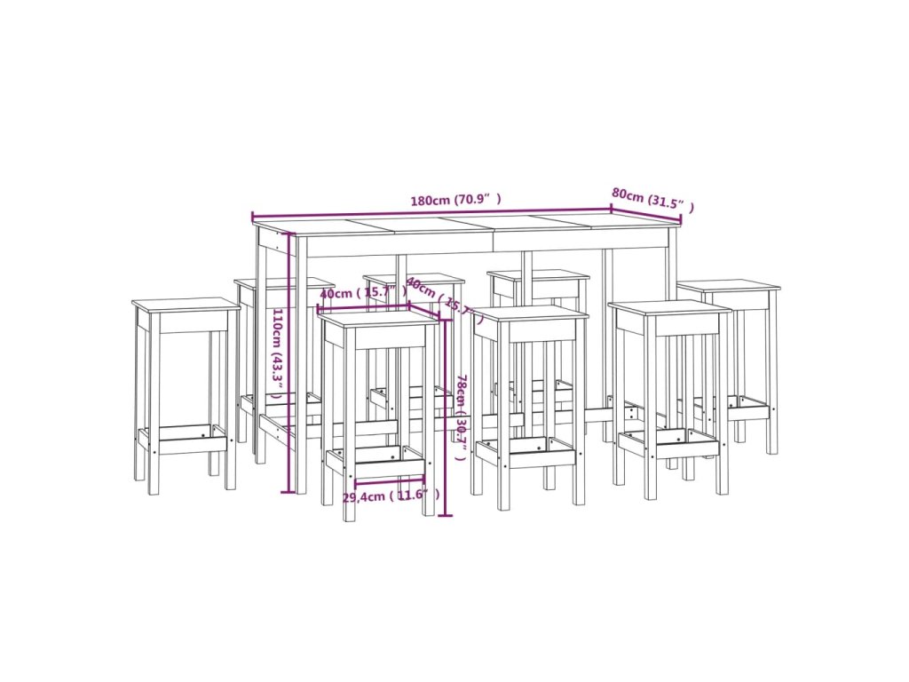 - Rozmery barového stola: 180 x 80 x 110 cm (D x Š x V)