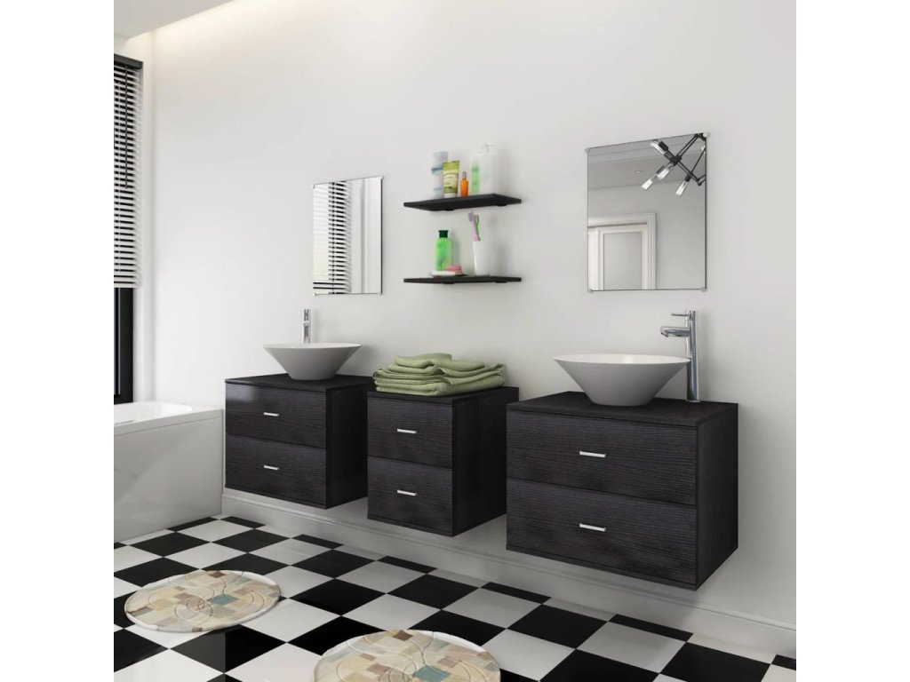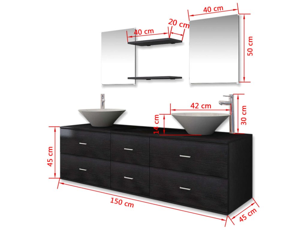 Táto kompletná sada, pozostávajúca z 1 skrinky pod umývadlo, 2 zrkadiel, 2 políc, 2 umývadiel a 2 batérií, bude skvelým doplnkom do Vašej kúpeľne a zoptimalizuje priestor bez kompromisov na štýle.