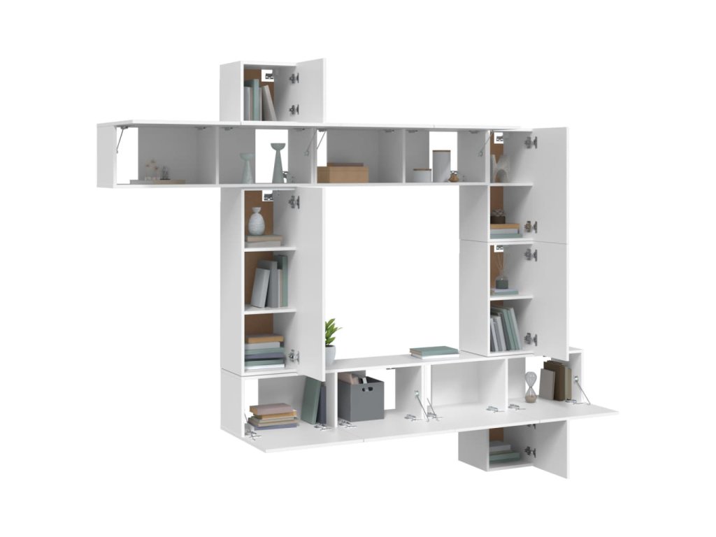 - Dostatok úložného priestoru: Televízna súprava poskytuje dostatok priestoru na uloženie multimediálnych zariadení, DVD prehrávača, multimediálnych nosičov, kníh a všetkých druhov menších predmetov.