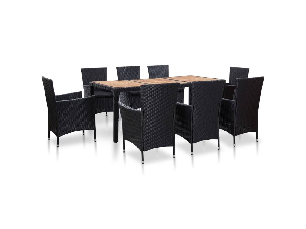 Jedálenská súprava je vyrobená z vodovzdorného PE ratanu, vďaka čomu sa ľahko čistí, je odolná a vhodná na každodenné používanie v exteriéri. Oceľové rámy s práškovou povrchovou úpravou súprave dodávajú potrebnú stabilitu a zaručujú veľmi dlhú životnosť výrobku. Súčasťou balenia je aj jedálenský stôl s doskou z akáciového masívu, ktorý sa hodí k našim elegantným stoličkám. Nahusto vyčalunené, odnímateľné podložky s molitanovou výplňou poskytujú optimálne pohodlie pri sedení. Polyesterové obliečky na podložky si nevyžadujú náročnú údržbu a dajú sa bez problémov zvliecť a oprať. Záhradná súprava sa jednoducho montuje.