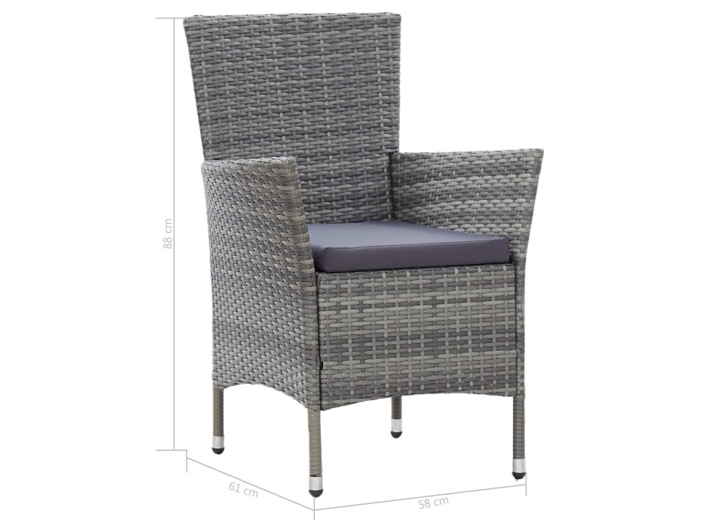 Jedálenská súprava je vyrobená z vodovzdorného PE ratanu, vďaka čomu sa ľahko čistí, je odolná a vhodná na každodenné používanie v exteriéri. Oceľové rámy s práškovou povrchovou úpravou súprave dodávajú potrebnú stabilitu a zaručujú veľmi dlhú životnosť výrobku. Súčasťou balenia je aj jedálenský stôl s doskou z akáciového masívu, ktorý sa hodí k našim elegantným stoličkám. Nahusto vyčalunené, odnímateľné podložky s molitanovou výplňou poskytujú optimálne pohodlie pri sedení. Polyesterové obliečky na podložky si nevyžadujú náročnú údržbu a dajú sa bez problémov zvliecť a oprať. Záhradná súprava sa jednoducho montuje.