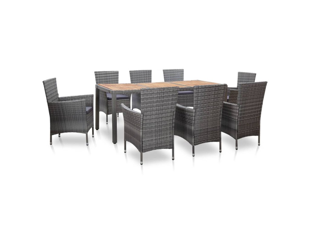 Naša pohodlná polyratanová jedálenská súprava stelesňuje dokonalú kombináciu štýlu a funkčnosti a stane sa stredobodom vašej záhrady alebo terasy.