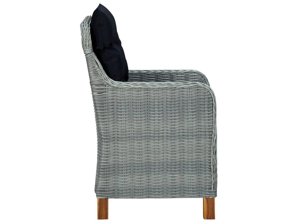 Súprava nábytku je vyrobená z ľahkého okrúhleho PE ratanu, ktorý si nevyžaduje náročnú údržbu a dá sa ľahko očistiť navlhčenou handričkou, a tak je ako stvorená do exteriéru. Stoličky a stôl majú oceľový rám s práškovou povrchovou úpravou, vďaka čomu sú stabilné a trvácne. Stolová doska z dreveného masívu vám poskytne ideálne miesto na stolovanie, a zároveň si na ňu môžete vystaviť rôzne ozodbné doplnky. Podložky s hustou výplňou vám poskytnú dokonalý komfort pri oddychovaní. Poťah podložky na zips sa dá zvliecť a oprať. Operadlo sklápacej stoličky sa dá podľa potreby polohovať vďaka mechanizmu plynového piesta. Stačí stlačiť tlačidlo na boku a operadlo sa sklopí, aby sa vám ležalo čo najpohodlnejšie.
