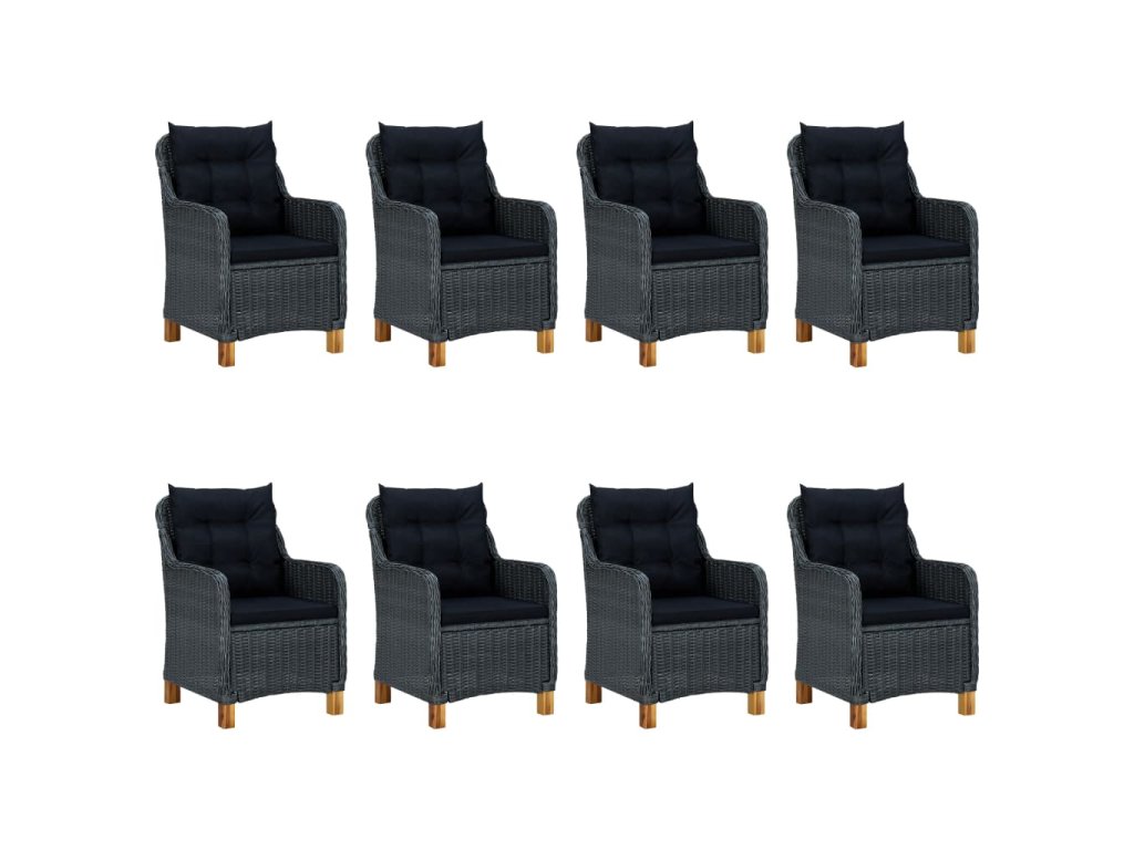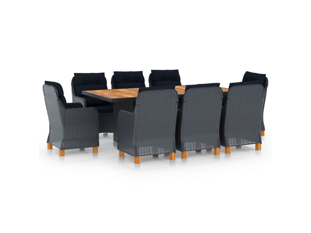 vidaXL 9-dielna vonkajšia jedálenská súprava s podložkami tmavosivá polyratanová