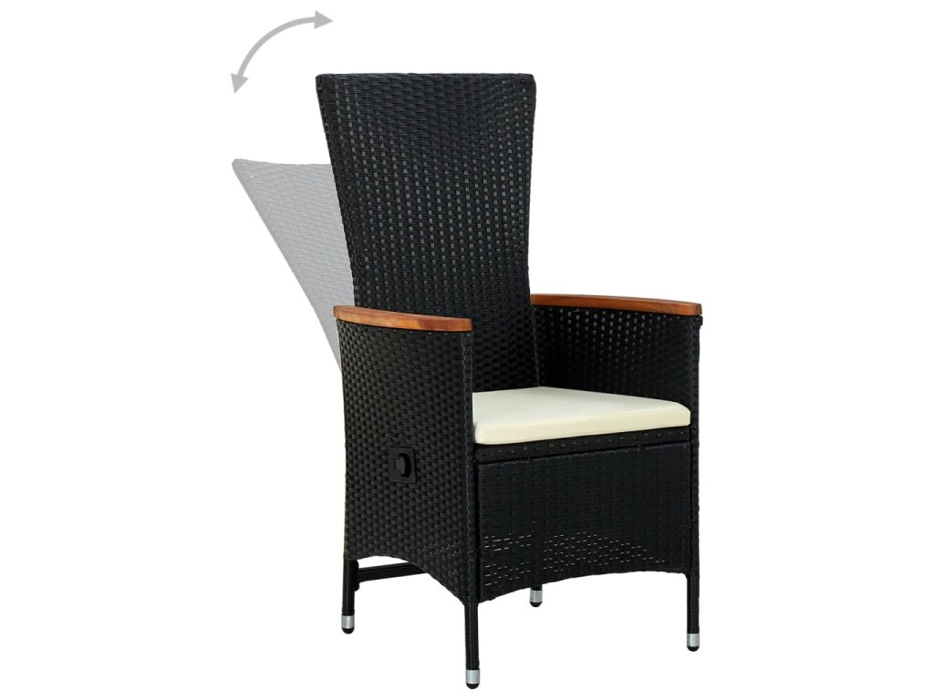 Stôl a stoličky sú pevné a stabilné vďaka oceľovým rámom s práškovým nástrekom, čím sú vhodné pre každodenné vonkajšie používanie. Vďaka vodeodolnému PE ratanu sa stoličky ľahko čistia a sú vhodné na každodenné používanie. Operadlo sa sklápa potiahnutím tlačidla na boku. Vďaka ľahkej konštrukcii sa stoličky ľahko premiestňujú. Hrubo čalúnené sedáky tiež zvyšujú pohodlie. Polyesterové poťahy nenáročné na údržbu je možné zvliecť a vyprať. Hladká sklenená doska stola sa jednoducho čistí vlhkou handričkou a je ideálna na umiestnenie jedál, nápojov a dekoratívnych predmetov.