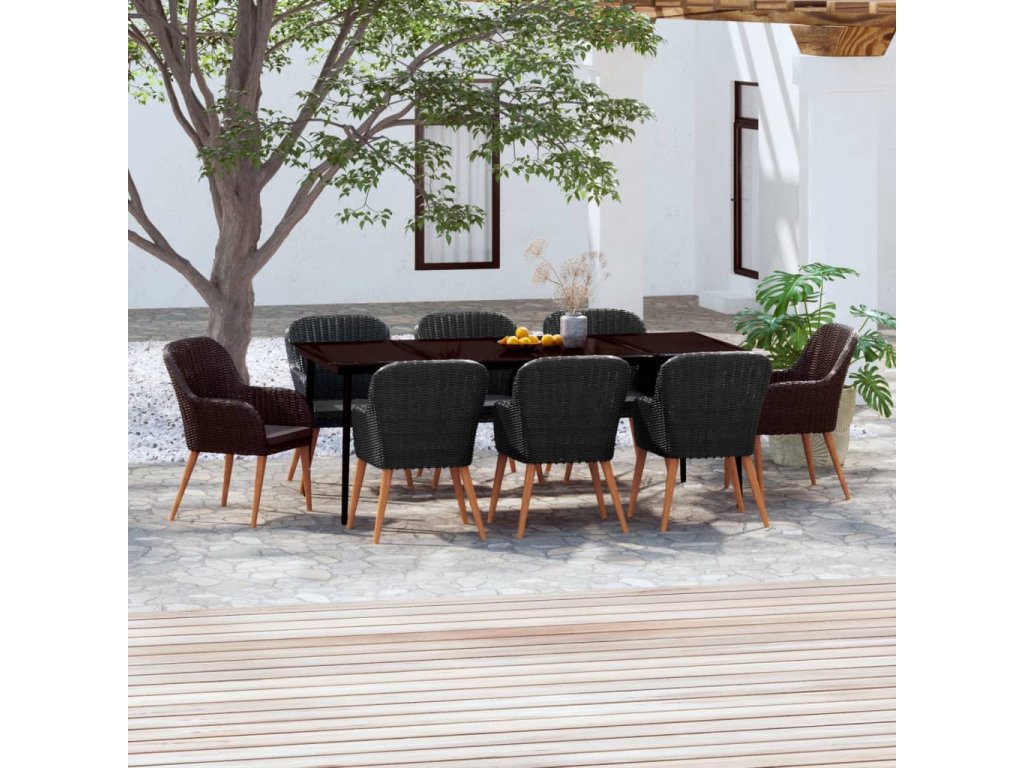Stôl a stoličky sú pevné a stabilné vďaka oceľovým rámom s práškovým nástrekom, čím sú vhodné pre každodenné vonkajšie používanie. Vďaka vodeodolnému PE ratanu sa stoličky ľahko čistia a sú vhodné na každodenné používanie. Ergonomicky navrhnutý tvar a hrubo polstrované, odnímateľné vankúše s penovou výplňou poskytujú maximálny komfort počas sedenia. Polyesterové poťahy na vankúše, ktoré sú nenáročné na údržbu, sa dajú ľahko sňať a vyprať. Hladká sklenená doska stola sa jednoducho čistí vlhkou handričkou a je ideálna na umiestnenie jedál, nápojov a dekoratívnych predmetov.