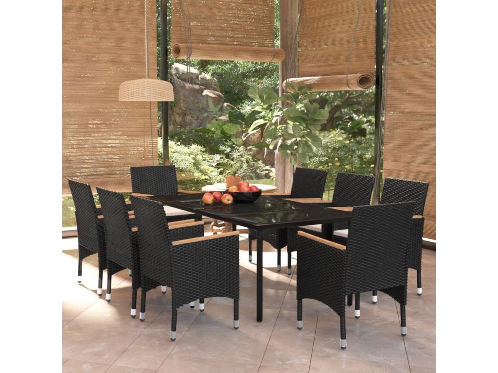 - Materiál: PE ratan, oceľ s práškovým nástrekom, sklo, masívne akáciové drevo