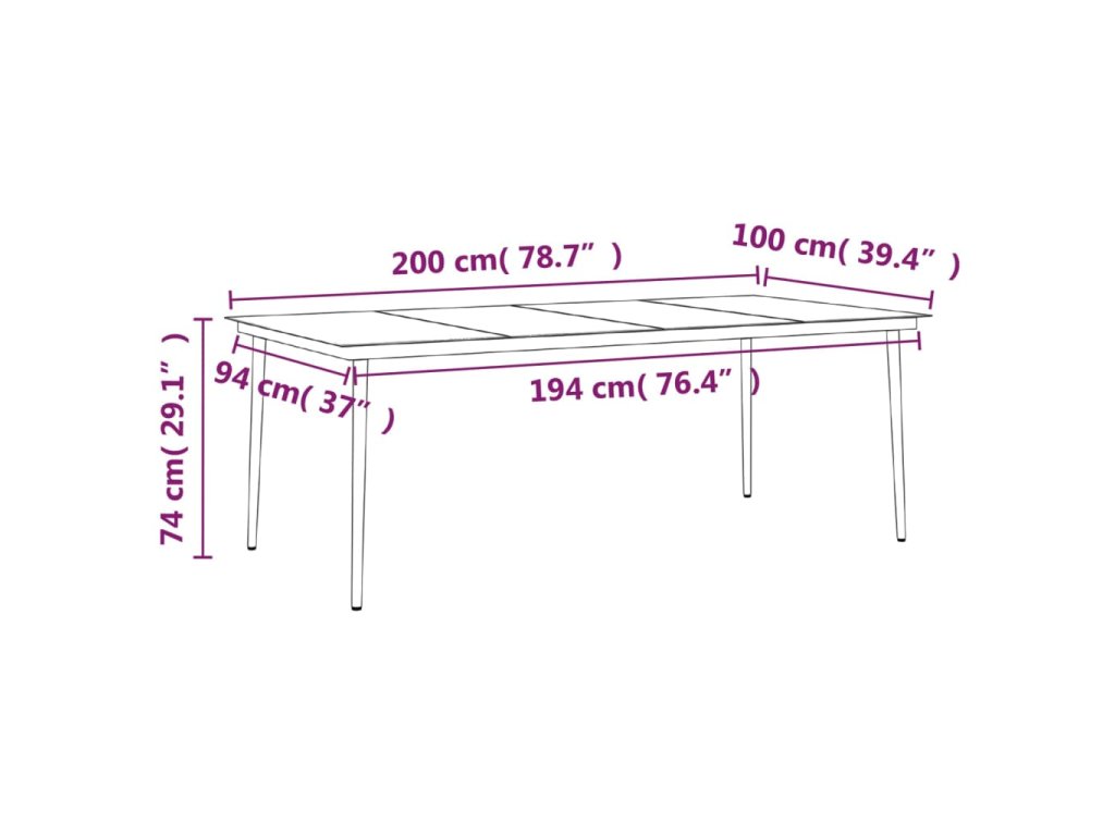 - Rozmery stola: 200 x 100 x 74 cm (D x Š x V)
