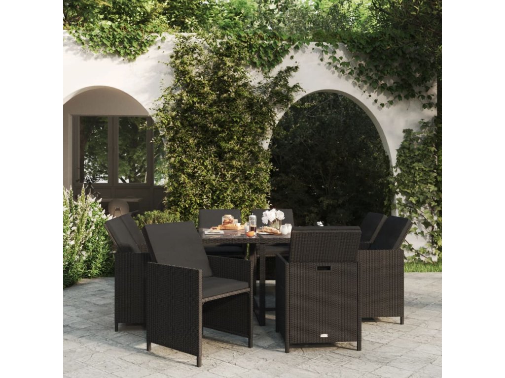 Súprava je vyrobená z PE ratanu odolného voči vode a vplyvom počasia. Ľahko sa čistí, je pevný a vhodný na každodenné používanie vonku. Oceľový rám s práškovanou povrchovou úpravou zabezpečuje, že sú stôl a stoličky pevné a trvácne. Hladká sklenená doska stola je ideálna na umiestnenie nápojov, jedla alebo dekoratívnych predmetov. Hrubé, mäkké, penou vyplnené sedáky a opierky tiež zvyšujú pohodlie počas sedenia. Navyše môžete operadlo sklopiť a stoličky uložiť pod stôl, čím ušetríte cenný úložný priestor, keď sa súprava nepoužíva. Vďaka ľahkej konštrukcii sa všetky predmety ľahko premiestňujú.