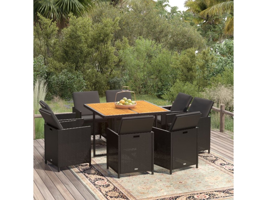 - Materiál: PE ratan, oceľ, akáciový masív s prírodným olejovým náterom