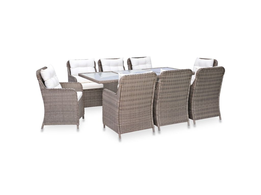 Táto luxusná okrúhla polyratanová jedálenská súprava pre 8 osôb má elegantný dizajn a bude hlavným prvkom vašej záhrady či verandy.