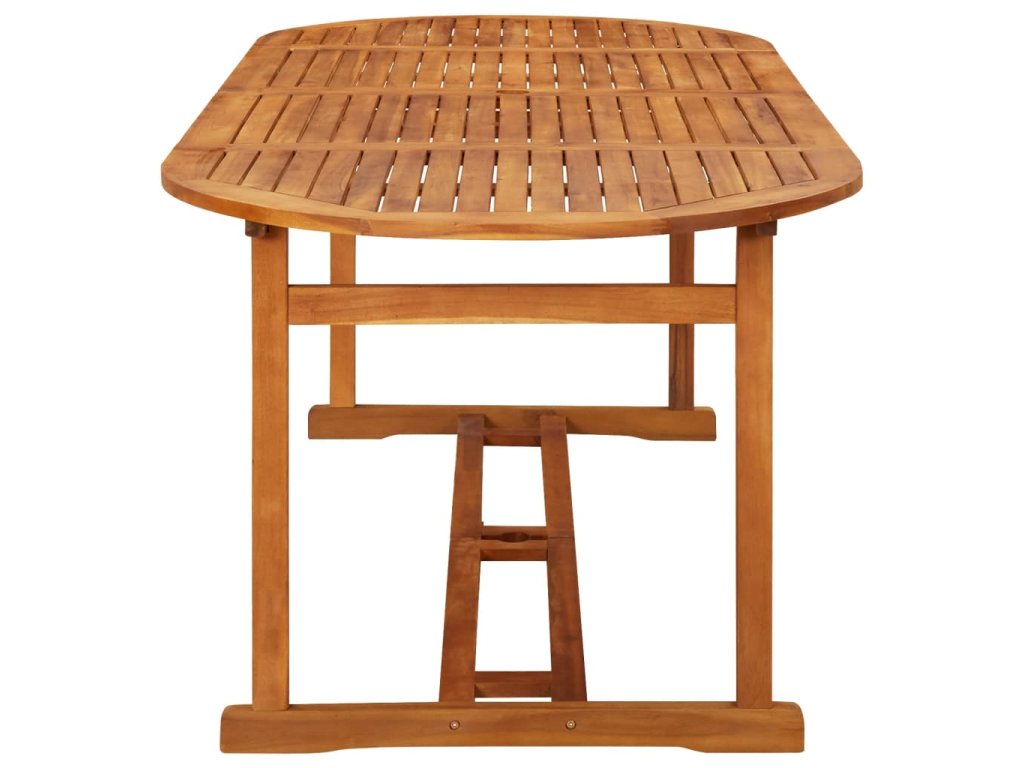 Vonkajšia jedálenská súprava je vyrobená z akáciového masívu, tropického tvrdého dreva, ktoré je trvácne a odolné voči poveternostným vplyvom, a tak vám vydrží dlhé roky. Povrch s olejovým náterom sa dá ľahko očistiť navlhčenou handričkou. Stoličky na terasu sa navyše dajú poskladať do kompaktných rozmerov, aby nezaberali veľa miesta, keď ich nepoužívate.
