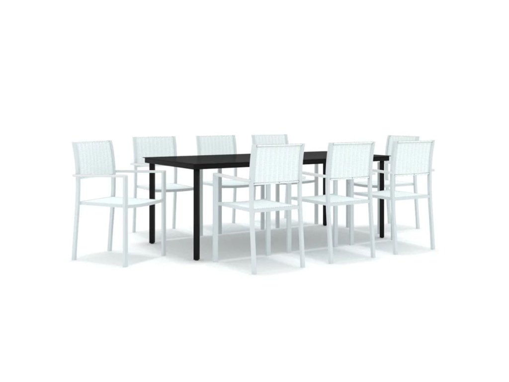Táto terasová súprava nábytku je vyrobená z oceľového rámu s práškovým nástrekom, vďaka čomu je pevná a stabilná na každodenné použitie vonku. Hladká sklenená doska stola sa jednoducho čistí vlhkou handričkou a je ideálna na umiestnenie jedál, nápojov a dekoratívnych predmetov. Ľahké vonkajšie jedálenské stoličky sú vyrobené z plastu, vďaka čomu sa dajú ľahko čistiť a presúvať. Záhradné jedálenské stoličky s ratanovým dizajnom dodajú vášmu vonkajšiemu obytnému priestoru nádych prirodzeného šarmu!