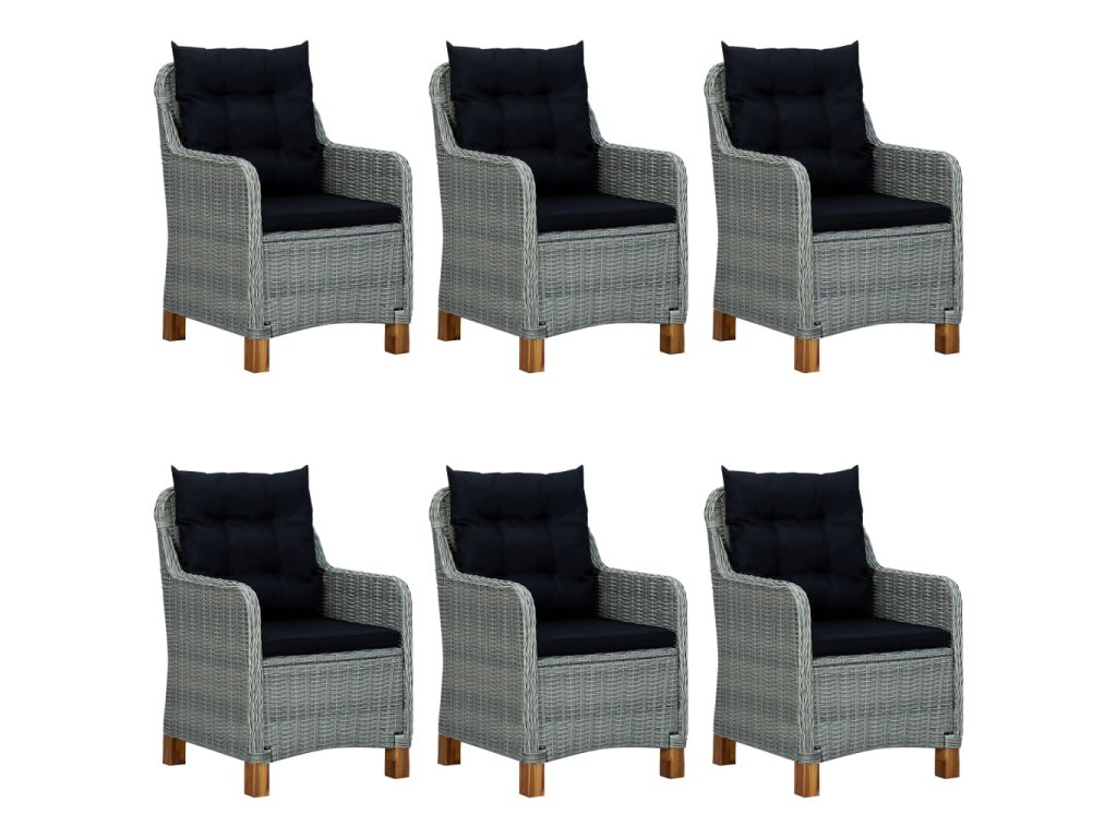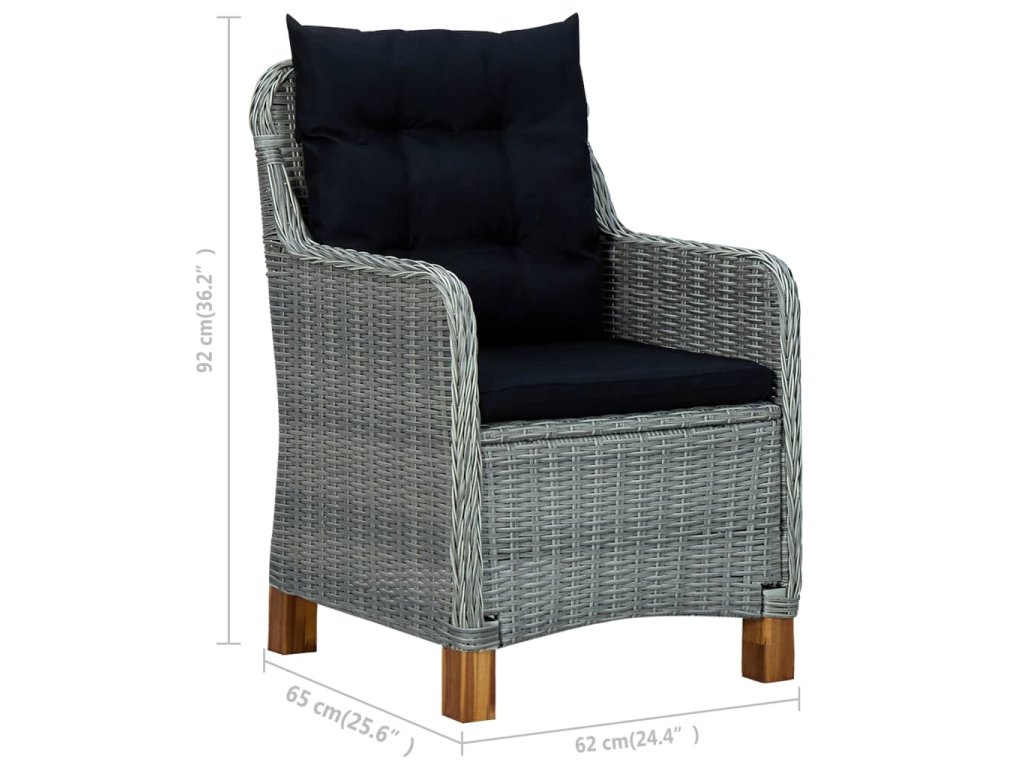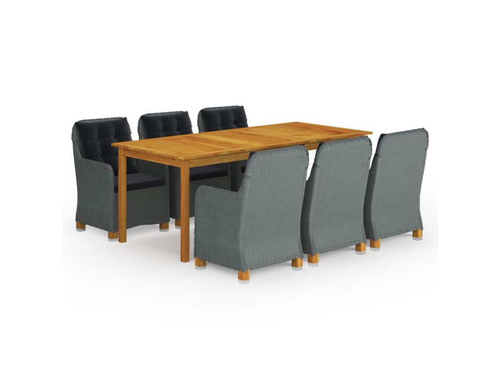 Jedálenský stôl je vyrobený z masívneho akáciového dreva s olejovou úpravou, vďaka čomu je stabilný, odolný a ľahko sa udržiava. Vonkajšie stoličky s oceľovým rámom s práškovým povrchom sú pokryté okrúhlym PE ratanom, a sú robustné a ľahko sa čistia. Husto polstrované vankúše zabezpečia ešte väčšie pohodlie počas oddychu. Poťah na vankúš je vybavený zipsom, dá sa jednoducho zvliecť a oprať. Nohy s masívneho akáciového dreva sa vyznačujú pevnosťou a stabilitou. Záhradné stoličky môžete jednoducho presúvať vďaka ich ľahkej konštrukcii.