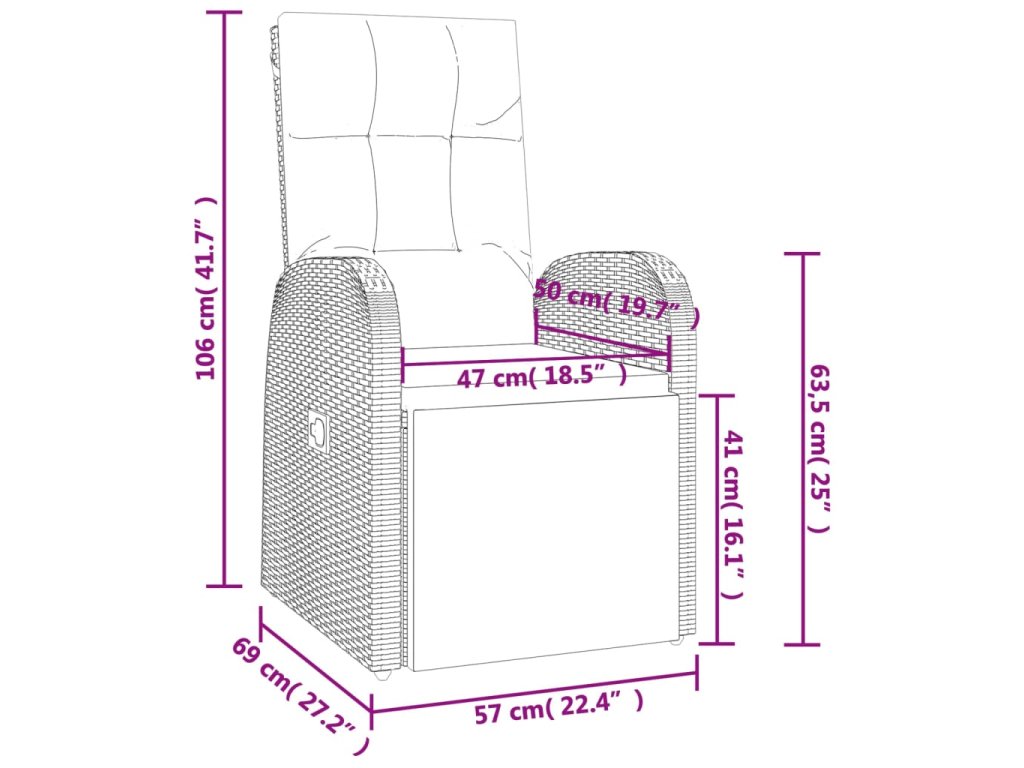 - Rozmery kresla v polohe na sedenie: 57 x 69 x 106 cm (Š x H x V)