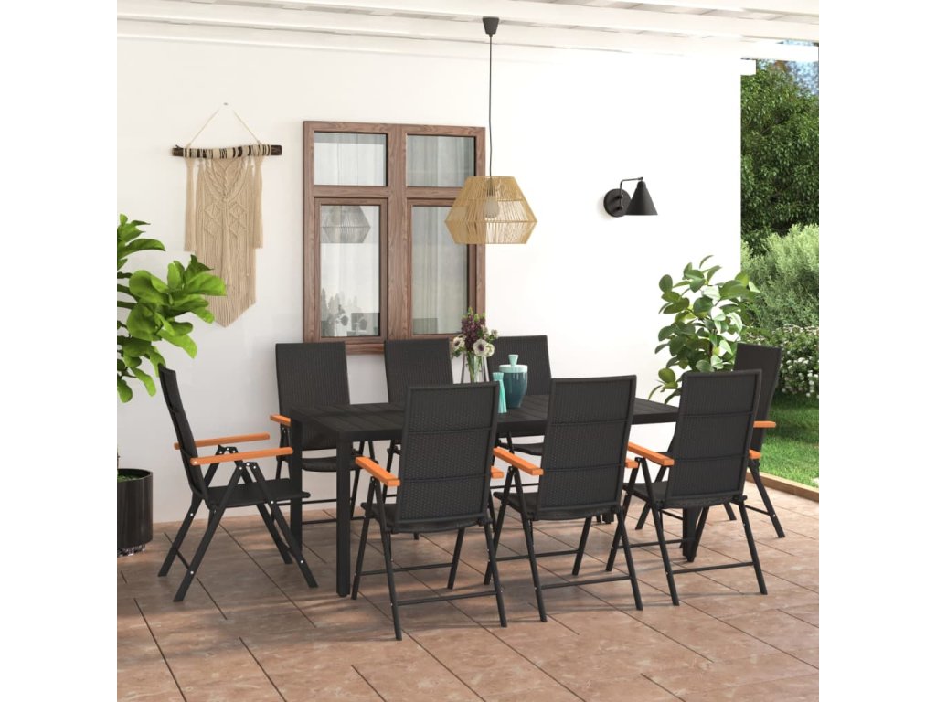 Záhradná stolička je vyrobená z PE ratanu, vďaka čomu je odolná voči poveternostným vplyvom a trvácna. Hnedé podrúčky z WPC dodávajú stoličkám štýlový vzhľad. Stolík je vybavený stolovou doskou z WPC s jednoduchými líniami, ľahko sa čistí a je vhodný na vonkajšie použitie. Hliníkové rámy tiež zaisťujú stabilitu a odolnosť tejto súpravy. Vďaka ľahkej konštrukcii sa táto súprava vonkajšieho nábytku jednoducho presúva.