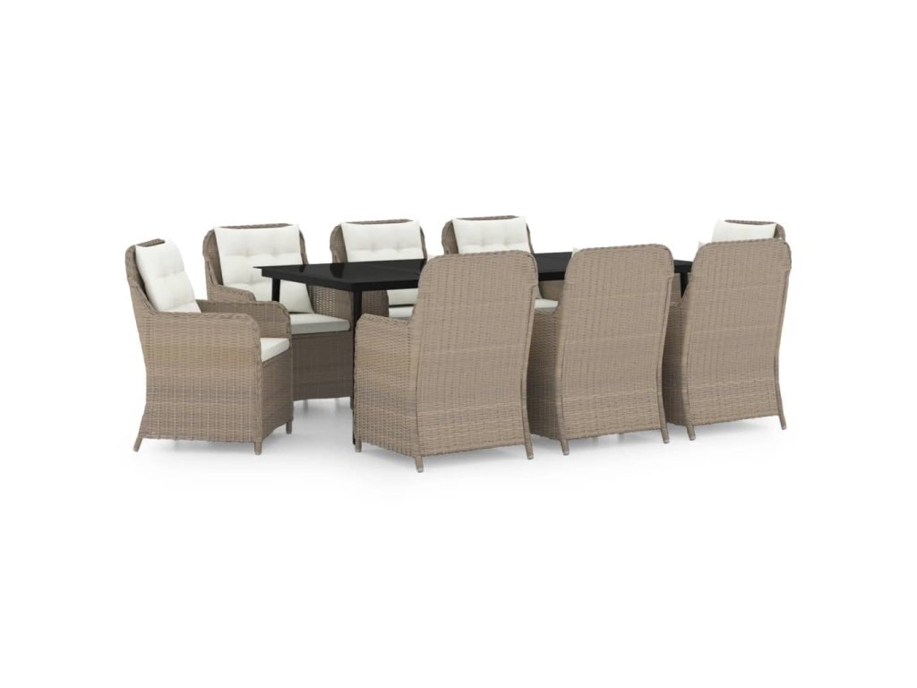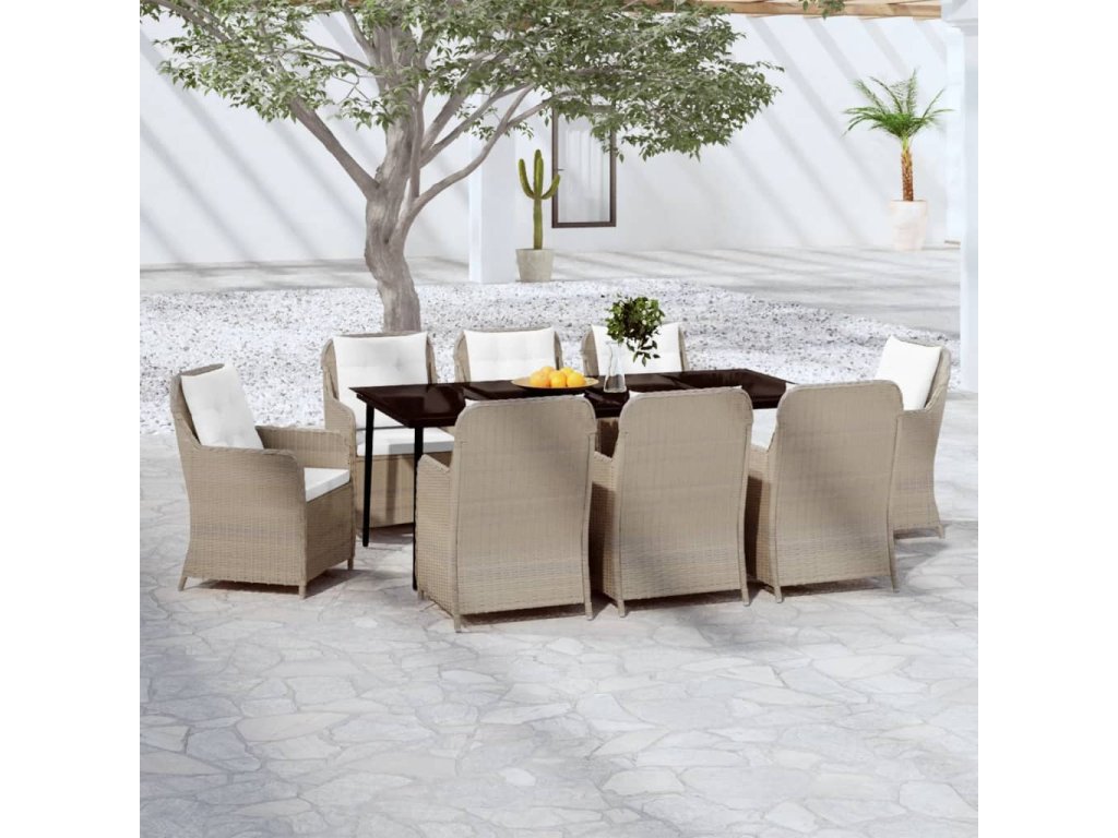 Praktická vonkajšia jedálenská súprava má oceľový rám, vďaka čomu je pevná a odolná. Záhradné stoličky sú vyrobené z vodeodolného a bezúdržbového PE ratanu, vďaka čomu sú ideálne pre vonkajšie použitie. Ergonomicky navrhnutý tvar a hrubo polstrované, odnímateľné vankúše s penovou výplňou poskytujú maximálny komfort počas sedenia. Polyesterové poťahy na vankúše, ktoré sú nenáročné na údržbu, sa dajú ľahko sňať a vyprať. Hladká sklenená stolová doska sa ľahko čistí vlhkou handričkou a je vynikajúca na umiestnenie jedál, nápojov a iných dekoratívnych predmetov.