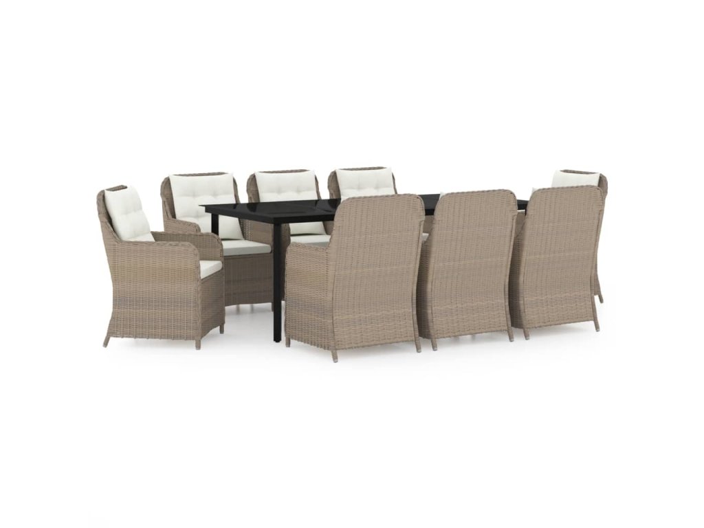 Praktická vonkajšia jedálenská súprava má oceľový rám, vďaka čomu je pevná a odolná. Záhradné stoličky sú vyrobené z vodeodolného a bezúdržbového PE ratanu, vďaka čomu sú ideálne pre vonkajšie použitie. Ergonomicky navrhnutý tvar a hrubo polstrované, odnímateľné vankúše s penovou výplňou poskytujú maximálny komfort počas sedenia. Polyesterové poťahy na vankúše, ktoré sú nenáročné na údržbu, sa dajú ľahko sňať a vyprať. Hladká sklenená stolová doska sa ľahko čistí vlhkou handričkou a je vynikajúca na umiestnenie jedál, nápojov a iných dekoratívnych predmetov.