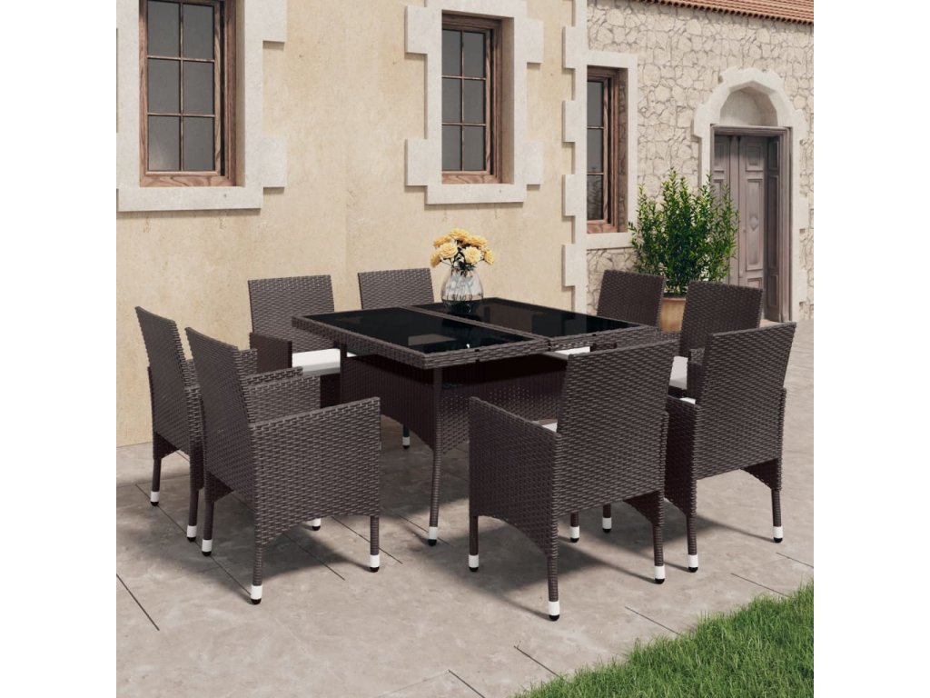 Táto jedálenská súprava je odolná voči poveternostným vplyvom a pevná, pretože je vyrobené z PE ratanu odolného voči UV a oceľového rámu s práškovaným povrchom. Spevnená vrchná časť z tvrdeného skla vytvára hladký a ľahko čistiteľný povrch. Každá sedačka je vybavená odnímateľným na hrubo polstrovaným vankúšom pre väčšie pohodlie počas oddychu. Všetky poťahy na vankúšoch sú odnímateľné pomocou zipsov. Ľahká konštrukcia navyše uľahčuje presúvanie, preusporiadanie a prepravu každého kusu.
