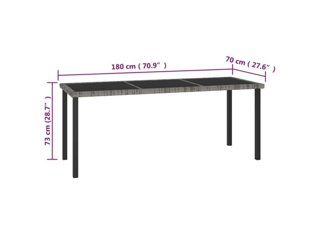 - Rozmery stola: 180 x 70 x 73 cm (D x Š x V)