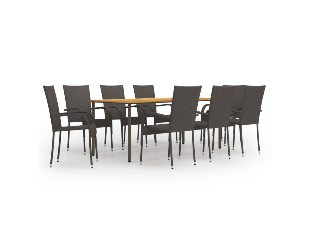 Jedálenský stôl je vyrobený z masívneho akáciového dreva a odolnej ocele, takže je pevný a stabilný. Vďaka povrchu s olejovým náterom je vhodný aj na vonkajšie použitie. Jedálenské stoličky s oceľovým rámom potiahnutým PE ratanom, ktorý je odolný voči poveternostným vplyvom, sú pevné a ľahko sa čistia. Tieto záhradné stoličky je možné stohovať, aby sa ušetrilo miesto, keď sa práve nepoužívajú.