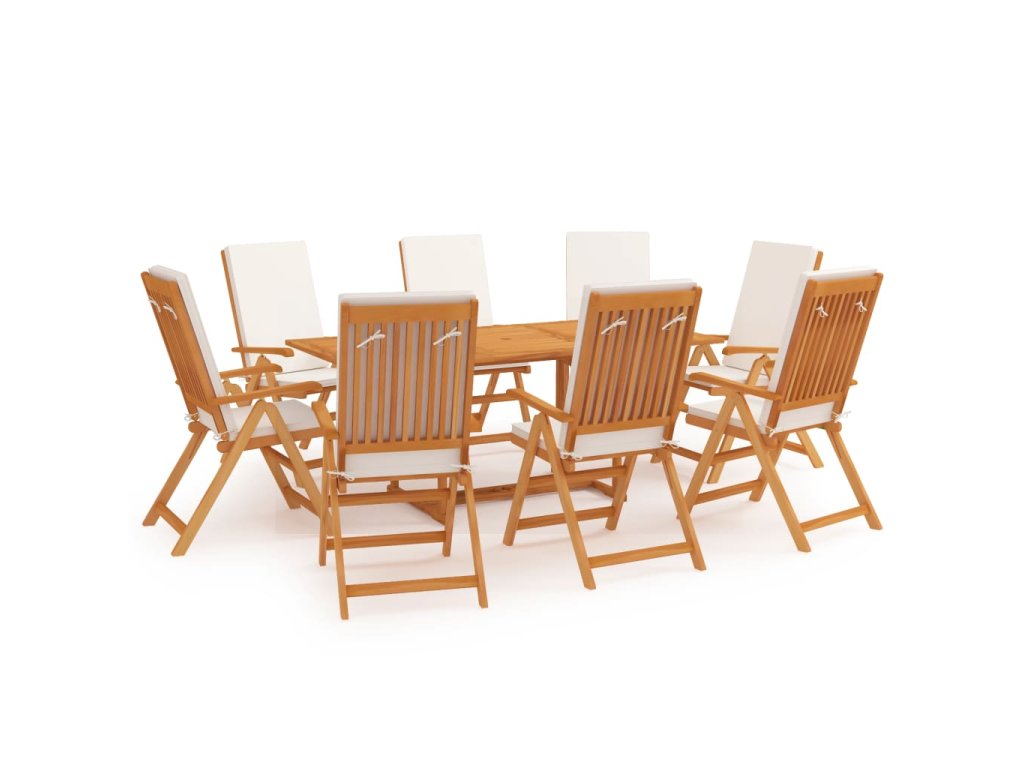 Súprava má krásnu povrchovú úpravu, ktorá dodáva drevu teplú farbu. Stôl má otvor na slnečník, čím poskytuje ochranu pred slnkom. Operadlá stoličiek sú nastaviteľné do 5 polôh, aby ste si vždy našli tú najpohodlnejšiu pozíciu. Vďaka sklopnému dizajnu sa dajú stoličky sklopiť, aby sa ušetrilo miesto, keď sa nepoužívajú. Sú tiež ľahké a ľahko sa presúvajú. Hrubé čalúnené vankúše poskytujú maximálne pohodlie a poťahy na vankúše sú odnímateľné pre ľahké pranie. Sada nábytku vám poskytuje pohodlie a príjemný čas strávený so svojou rodinou a priateľmi. Okrem toho sa táto sada ľahko čistí vlhkou handričkou.