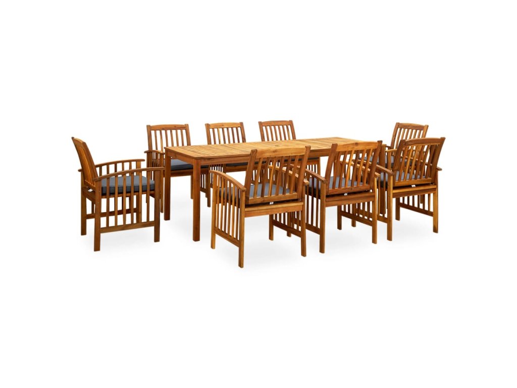 Jedálenský stôl je vyrobený z masívneho akáciového dreva, tvrdého dreva s hustou štruktúrou, vďaka čomu je robustný, odolný a ľahko sa udržiava. Drevenú dosku je možné použiť na uloženie potravín, nápojov a iných predmetov. Tieto jedálenské stoličky s dreveným rámom s olejovou povrchovou úpravou dodávajú vašej terase alebo dvoru klasický vzhľad a vášmu vonkajšiemu priestoru dodávajú prirodzený nádych. Husto polstrované vankúše tiež dodávajú extra pohodlie pri sedení. Táto súprava sa navyše ľahko čistí vlhkou handričkou.