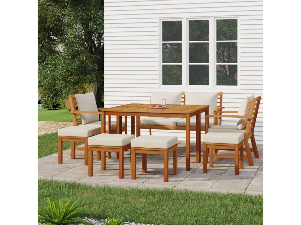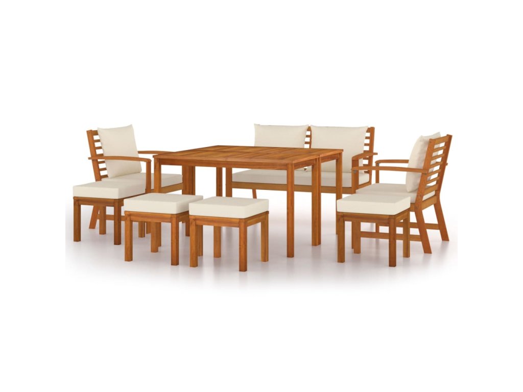 Táto drevená záhradná jedálenská súprava s vankúšmi s nadčasovým dizajnom dodá vašej terase, balkónu alebo záhrade nádych rustikálneho šarmu.