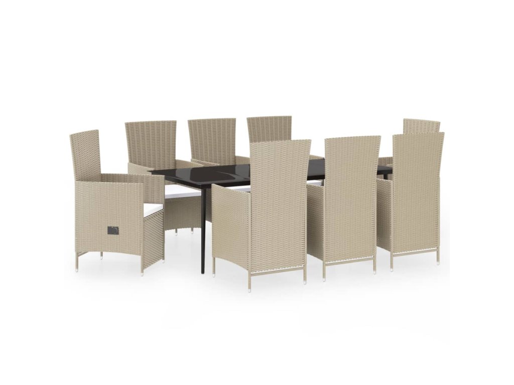 Stôl a stoličky sú pevné a stabilné vďaka oceľovým rámom s práškovým nástrekom, čím sú vhodné pre každodenné vonkajšie používanie. Vďaka vodeodolnému PE ratanu sa stoličky ľahko čistia a sú vhodné na každodenné používanie. Opierku chrbta a nôh je možné nastaviť potiahnutím tlačidla na boku. Vďaka ľahkej konštrukcii sa stoličky ľahko premiestňujú. Hrubo čalúnené sedáky tiež zvyšujú pohodlie. Polyesterové poťahy nenáročné na údržbu je možné zvliecť a vyprať. Hladká sklenená doska stola sa jednoducho čistí vlhkou handričkou a je ideálna na umiestnenie jedál, nápojov a dekoratívnych predmetov.
