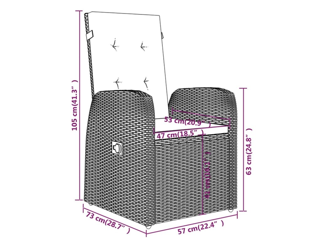 - Rozmery kresla (nesklopené): 57 x 73 x 105 cm (Š x H x V)