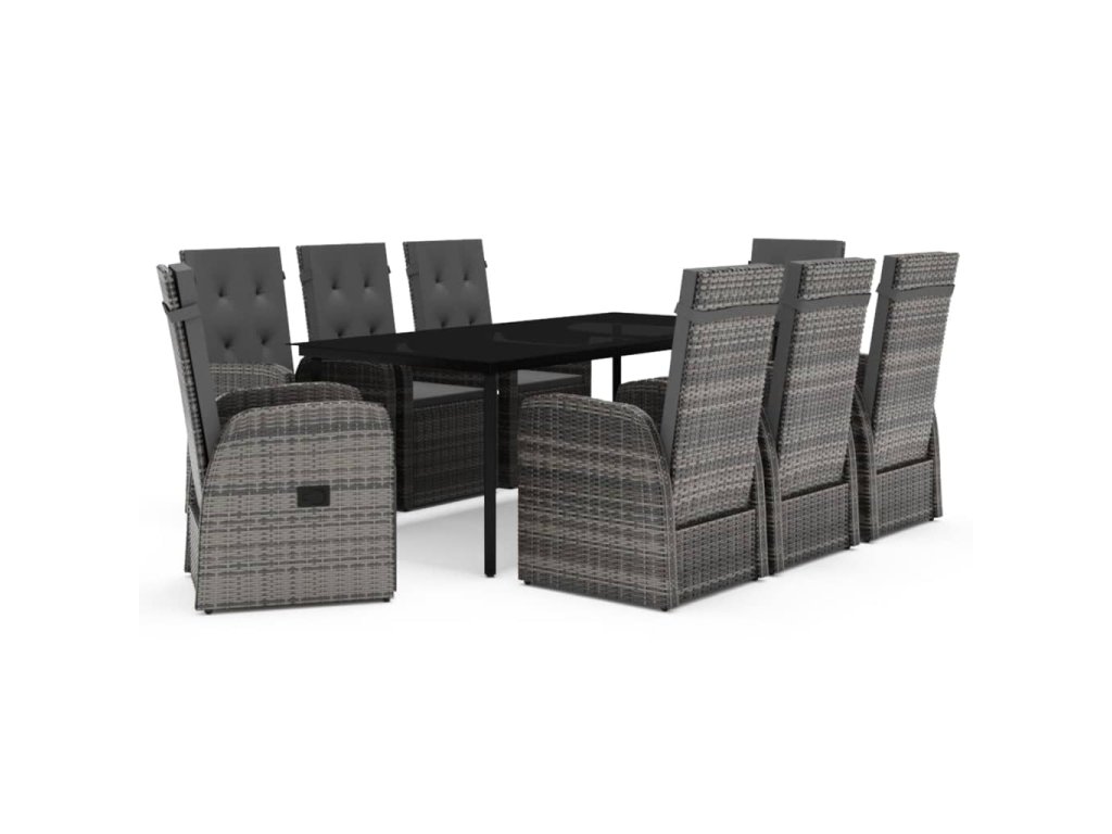 Stôl a stoličky sú pevné a stabilné vďaka oceľovým rámom s práškovým nástrekom, čím sú vhodné pre každodenné vonkajšie používanie. Vďaka vodeodolnému PE ratanu sa stoličky ľahko čistia a sú vhodné na každodenné používanie. Opierku chrbta a nôh je možné nastaviť potiahnutím tlačidla na boku. Vďaka ľahkej konštrukcii sa stoličky ľahko premiestňujú. Hrubo čalúnené sedáky tiež zvyšujú pohodlie. Polyesterové poťahy nenáročné na údržbu je možné zvliecť a vyprať. Hladká sklenená doska stola sa jednoducho čistí vlhkou handričkou a je ideálna na umiestnenie jedál, nápojov a dekoratívnych predmetov.