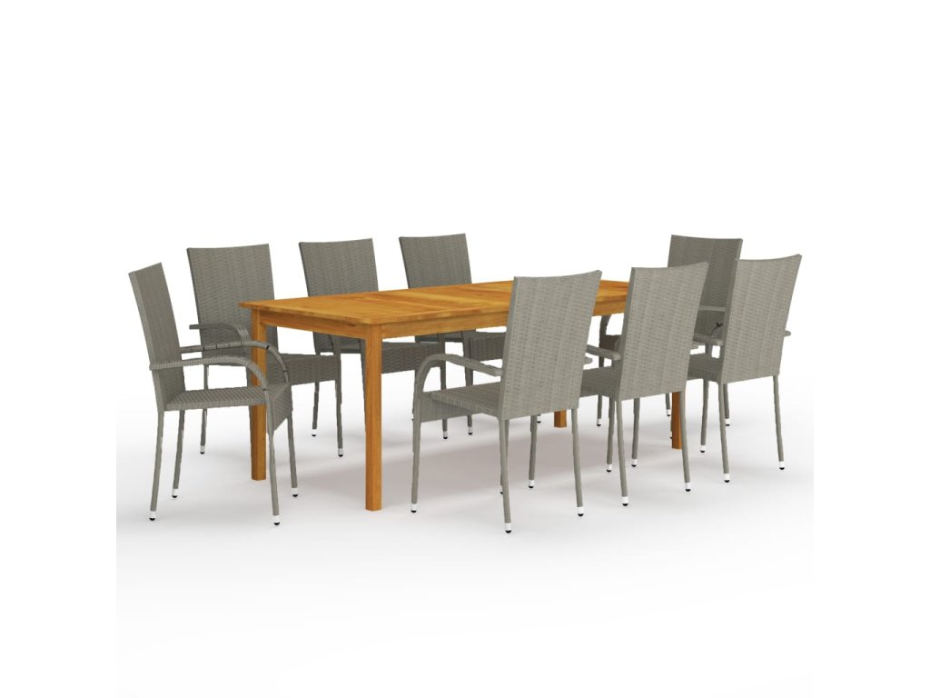 Jedálenský stôl je vyrobený z masívneho akáciového dreva s olejovou povrchovou úpravou, vďaka čomu je stabilný, odolný a ľahko sa udržiava. Tieto jedálenské stoličky s oceľovým rámom s práškovým nástrekom pokrytým PE ratanom odolným voči poveternostným vplyvom sú pevné a ľahko sa čistia. Vonkajšie stoličky sú ľahké a dajú sa skladať na seba, aby sa ušetrilo miesto, keď sa nepoužívajú.
