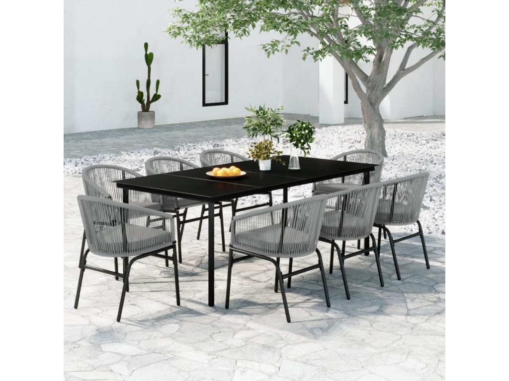 Táto záhradná jedálenská súprava je vyrobená z oceľového rámu s práškovým nástrekom, vďaka čomu je pevná a stabilná na každodenné použitie vonku. Hladká sklenená doska stola sa jednoducho čistí vlhkou handričkou a je ideálna na umiestnenie jedál, nápojov a dekoratívnych predmetov. Terasové stoličky sú vyrobené z PVC ratanu, vďaka čomu sú stabilné a odolné voči nepriazni počasia a UV žiareniu. Každé sedadlo je vybavené odnímateľným husto polstrovaným vankúšom, ktorý zvyšuje pohodlie počas sedenia.