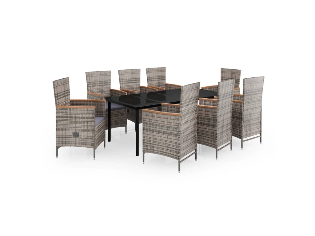 Stôl a stoličky sú pevné a stabilné vďaka oceľovým rámom s práškovým nástrekom, čím sú vhodné pre každodenné vonkajšie používanie. Vďaka vodeodolnému PE ratanu sa stoličky ľahko čistia a sú vhodné na každodenné používanie. Operadlo sa sklápa potiahnutím tlačidla na boku. Vďaka ľahkej konštrukcii sa stoličky ľahko premiestňujú. Hrubo čalúnené sedáky tiež zvyšujú pohodlie. Polyesterové poťahy nenáročné na údržbu je možné zvliecť a vyprať. Hladká sklenená doska stola sa jednoducho čistí vlhkou handričkou a je ideálna na umiestnenie jedál, nápojov a dekoratívnych predmetov.
