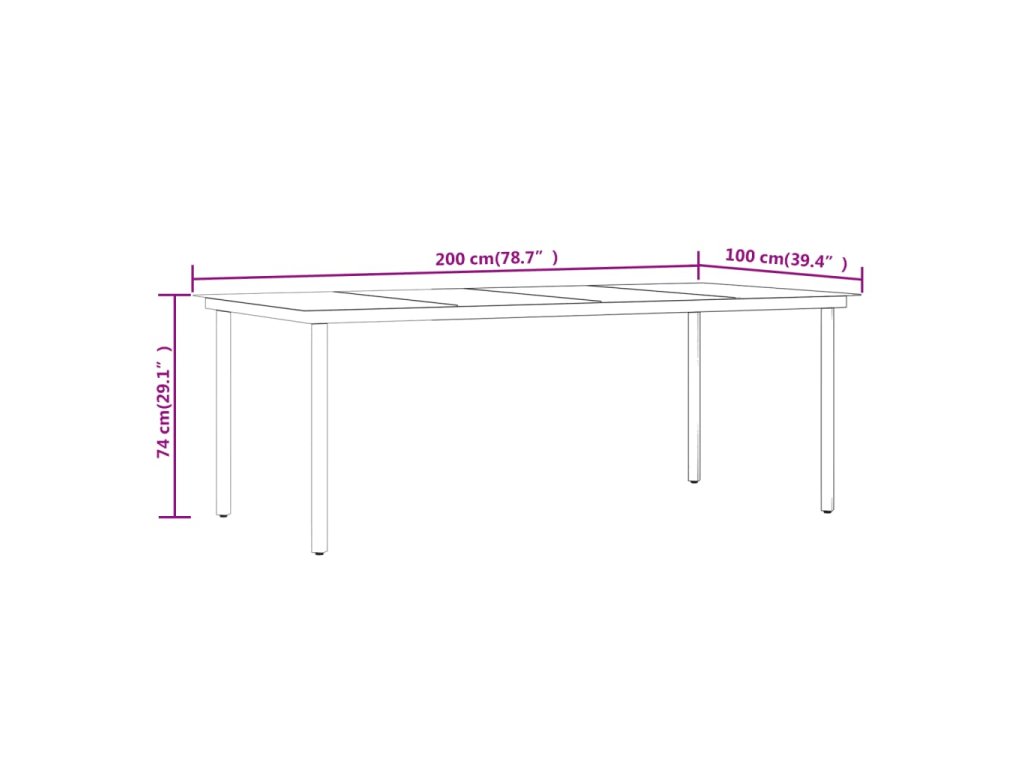 - Rozmery stola: 200 x 100 x 74 cm (D x Š x V)