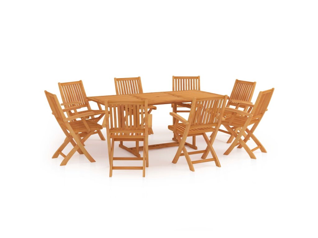 Súprava má krásnu povrchovú úpravu, ktorá dodáva drevu teplú farbu. Stôl má otvor na slnečník, takže poskytne aj ochranu pred slnkom. Zakrivené sedadlá a operadlá stoličiek poskytnú vášmu telu vhodnú oporu. Vďaka sklopnému dizajnu sa dajú stoličky sklopiť, aby sa ušetrilo miesto, keď sa nepoužívajú. Sú tiež ľahké a ľahko sa presúvajú. Sada nábytku vám poskytuje pohodlie a príjemný čas strávený so svojou rodinou a priateľmi. Okrem toho sa táto sada ľahko čistí vlhkou handričkou.