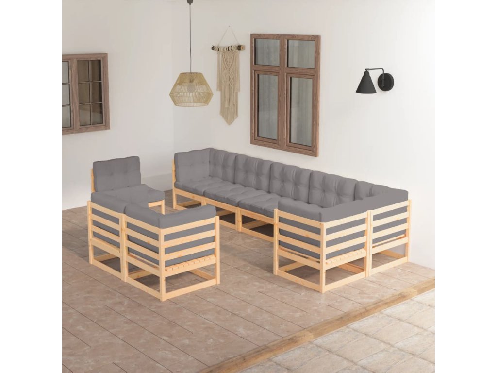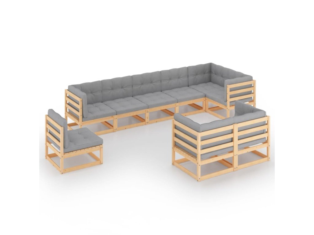 Záhradná sedacia súprava je vyrobená z masívneho borovicového dreva, vďaka čomu je robustná a stabilná. Vankúše jej dodávajú dodatočné pohodlie. Môžete ju skombinovať s inými modulárnymi segmentmi a vytvoriť si tak svoje vlastné konfigurácie záhradného posedenia!