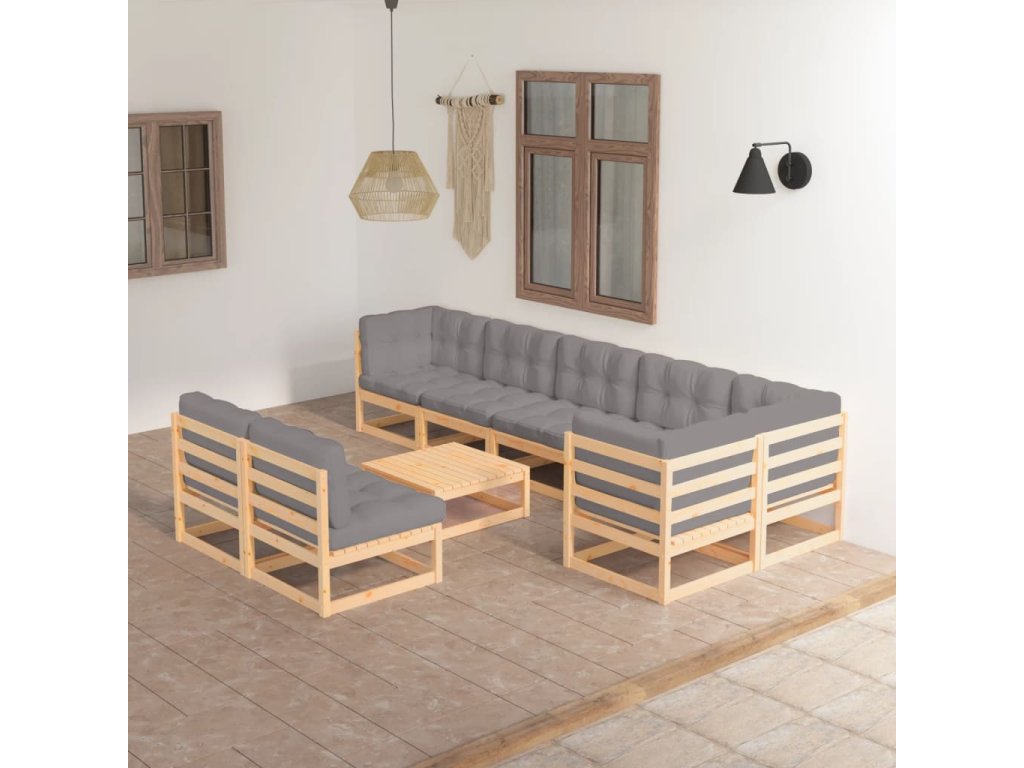 Záhradná sedacia súprava je vyrobená z masívneho borovicového dreva, vďaka čomu je robustná a stabilná. Vankúše jej dodávajú dodatočné pohodlie. Môžete ju skombinovať s inými modulárnymi segmentmi a vytvoriť si tak svoje vlastné konfigurácie záhradného posedenia!