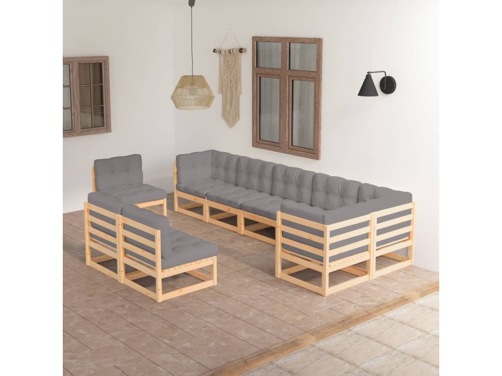 Záhradná sedacia súprava je vyrobená z masívneho borovicového dreva, vďaka čomu je robustná a stabilná. Vankúše jej dodávajú dodatočné pohodlie. Môžete ju skombinovať s inými modulárnymi segmentmi a vytvoriť si tak svoje vlastné konfigurácie záhradného posedenia!